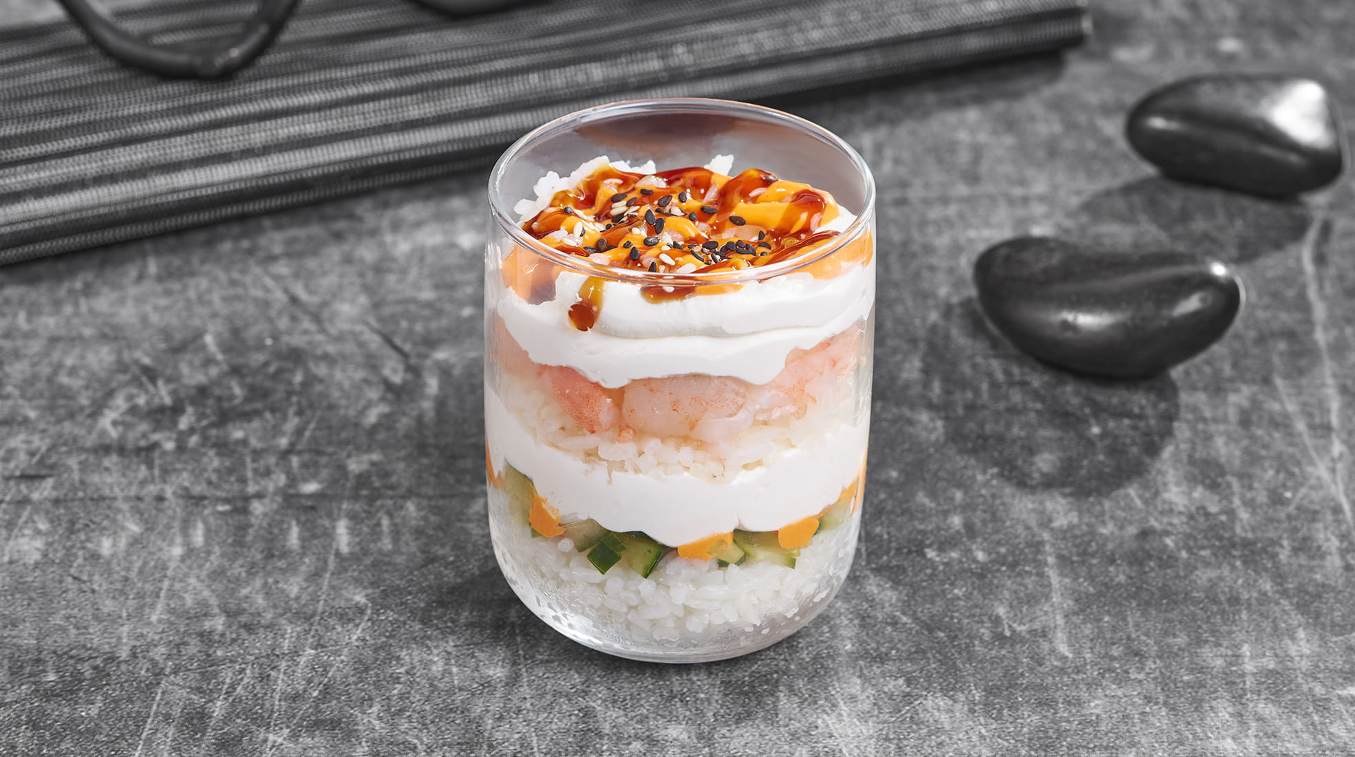Крем чиз, креветка, огурец, спайси соус, унаги соус, кунжут, рис. *Внешний вид блюда может отличаться от фото на сайте.